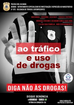 A Polícia Civil, através das equipes do DENARC / DTE Conquista, DIRPIN Sudoeste, 10a COORPIN, DRACO, DH, DRFR, DT Poções, DT Cândido Sales, DEAM, no âmbito da operação NARKE IV, coordenada pelo Ministério da Justiça e Segurança Pública, efetuou, na manhã da presente data ( 26-06-2025), o cumprimento de 10 mandados de busca e apreensão expedidos pela justiça, em imóveis de alvos suspeitos de integrarem uma facção criminosa que atua no narcotráfico na região sudoeste.
